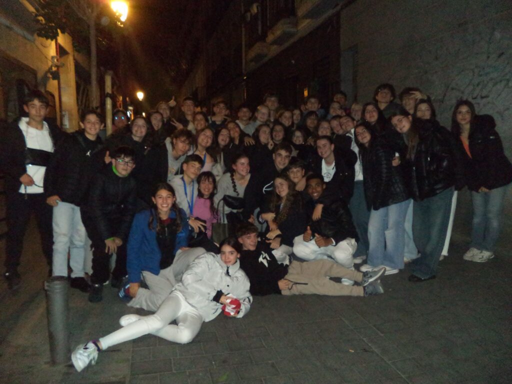 Auch dieses Schuljahr gab es so ein internationales Treffen. Vom 14. bis zum 22.11.2025 waren 18 Schüler der Erasmus+ AG in Madrid, der Hauptstadt Spaniens. Am 14.11 war der Flug von Düsseldorf nach Madrid. Wir kamen abends am Flughafen an und trafen da als erstes den Schulleiter der Partnerschule, Pablo. Er hat sich uns direkt mit seinem Vornamen vorgestellt; seinen Nachnamen kenne ich überhaupt nicht. Dies liegt daran dass die Menschen in Spanien sich fast immer gegenseitig mit dem Vornamen ansprechen. Mit ihm sind wir per Bus zur Partnerschule „IES Joaquin Rodrigo“ gefahren. Bei der Ankunft trafen wir unsere spanischen Partner. Wir begrüßten sie und alle suchten nach ihren Gastgebern.